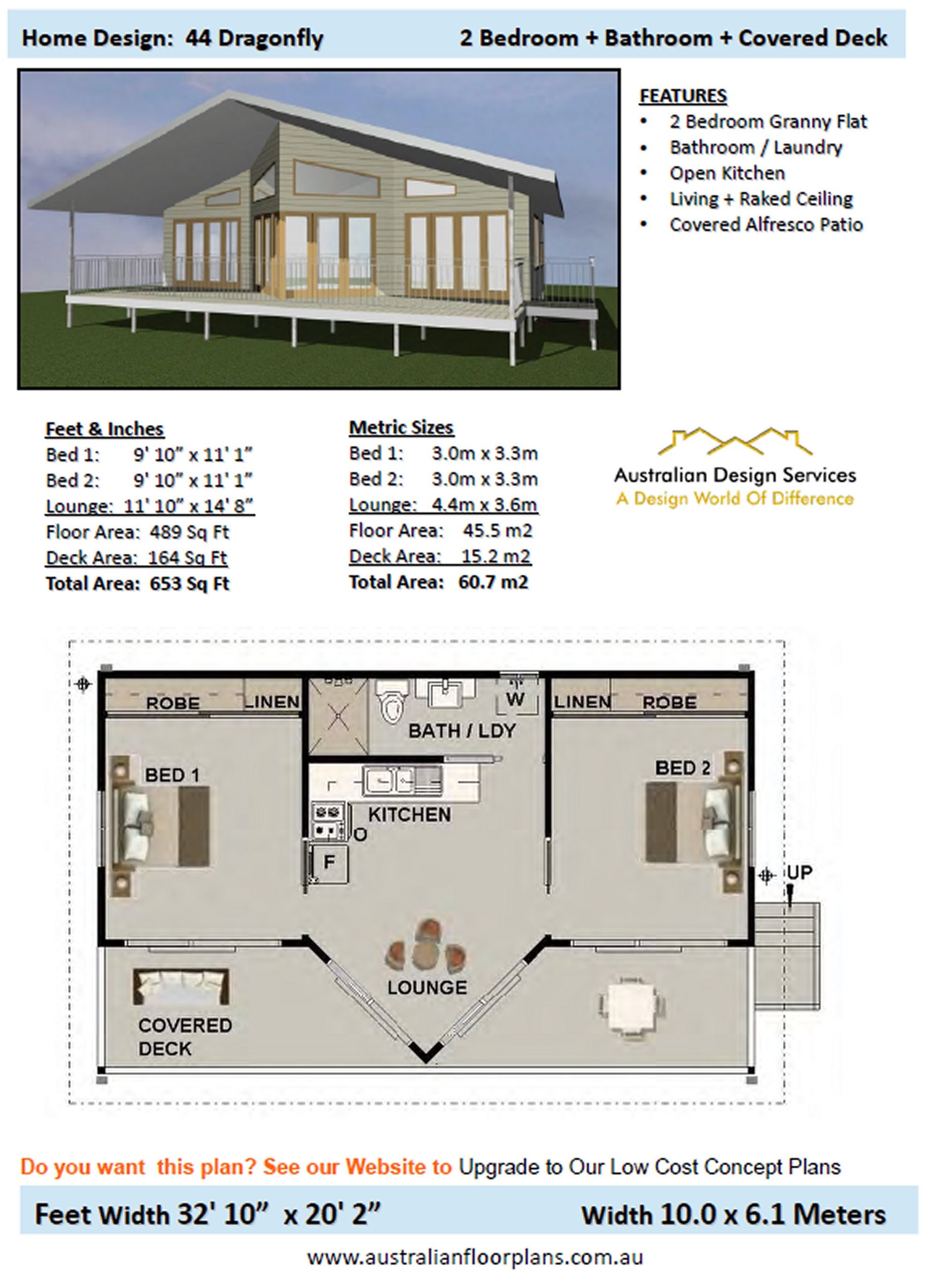 60 7 M2 Or 653 Sq Foot Australian 2 Bedroom House Plan Etsy Uk
